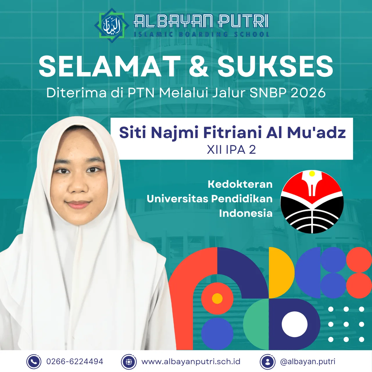 PPDB Al Bayan Putri tahun ajaran 2026/2027 telah dibuka. Mari bersama meniti masa depan gemilang